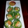 Noodles, tofu and vegetables wrapped in rice paper with homemade sauce and crushed peanut.